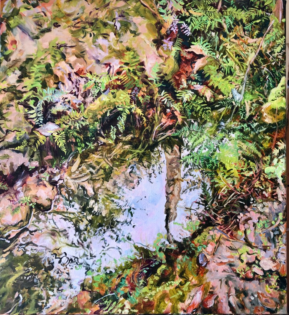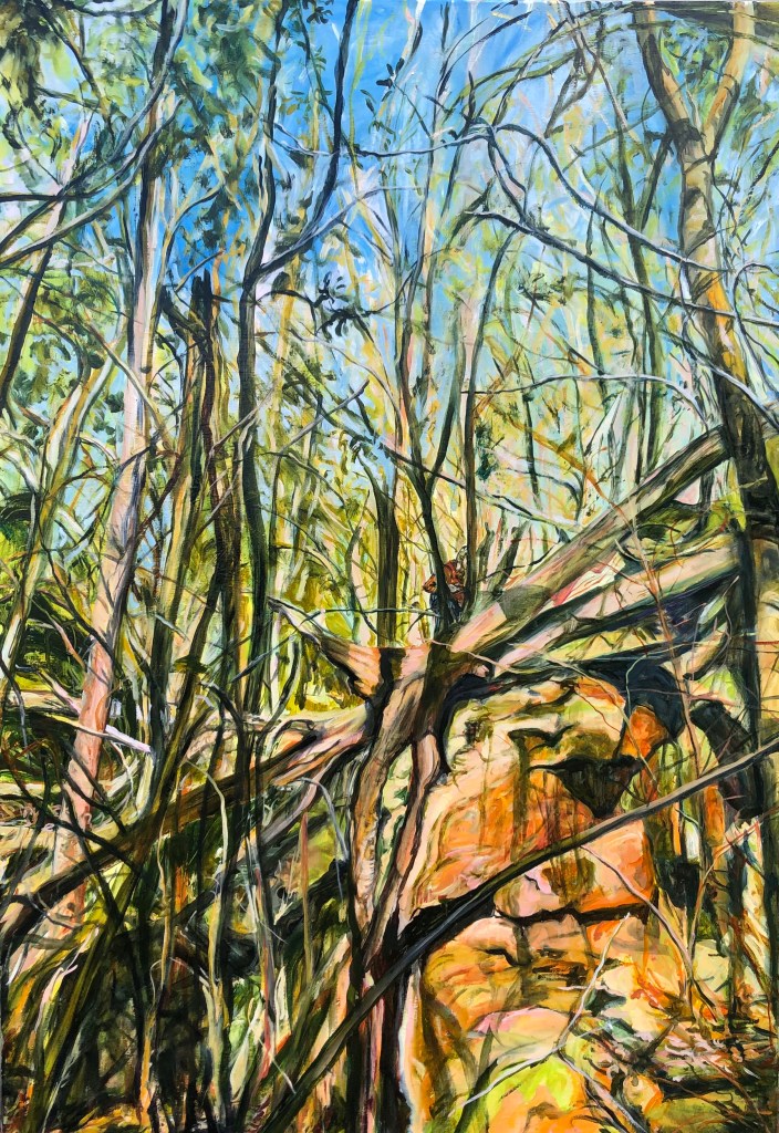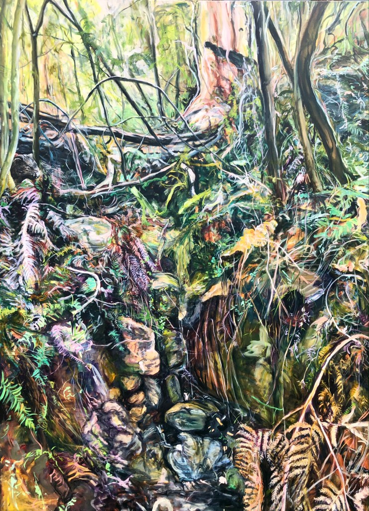 The surrounding bushland of my home is the main focus of my paintings in which I spend a lot of time exploring and absorbing the many nuances of my subject. The work is an expression of the intimate relationship we have with nature, the human narrative we impose upon it and its ability to define us.